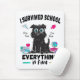 Das lustige Schuldesign mit einem gestressten Hund und das Zitat "Ich habe die Schule überlebt, alles ist in Ordnung". Ideal für den letzten Schultag vor dem Sommerurlaub oder der Sommerpause. Für Studenten und Lehrer.