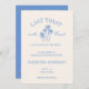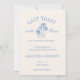 Custom Beach Bachelorette Letzten Toast auf der Coast Logo-Einladungsvorlage mit einem Retro inspiriert Junggeselinnen-Abschied Logo mit Palmen in blau auf cremeweißem Hintergrund. Eine lustige Einladung mit einem Bachelorette-Wochenende-Logo, das den Namen der Braut enthält. Auf der Rückseite gibt es Platz für Ihre Bachelorette Wochenendreise, damit Ihr Girls Club sich auf das Party Wochenende vorbereiten kann! Die perfekte Einladung für ein Tulum Bachelorette, Cancun Bachelorette, Miami Bachelorette oder ein anderes Party am Strand.