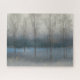 Letzter Herbsttag von Tim Oole. Friedliches Bild von Bäumen in einem Feld, in erster Linie unter Verwendung eines neutralen und blauen Farbschemas.