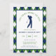 Feiern Sie den zukünftigen Bräutigam mit einem Tag auf dem Golfplatz! Diese golf-themed Einladung zur Bachelor-Party zeigt ein klassisches navy, grün und weißes Argyle-Muster, das die Ästhetik eines Country Clubs perfekt einfängt. In der Mitte befindet sich eine klare Silhouette eines Golfers mitten im Schwung, gepaart mit der schlagfertigen Überschrift "Letzter Schwung vor dem Ring". Diese Vorlage ist vollständig anpassbar, sodass Sie den Namen, das Datum, die Startzeit und die Ortsdetails problemlos aktualisieren können. Ob Sie 18 Löcher oder einen gemütlichen Nachmittag auf der Driving Range planen, diese präppy und professionelle Einladung gibt den richtigen Ton für eine anspruchsvolle Feier an.