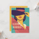 Eine elegante und farbenfrohe letzte Rodeo-Bachelorette-Wochenende-Einladung mit einem Retro-Vintagen Thema, mit einer Posterdarstellung einer schönen Frau in einer sanften Pose, mit einem stilisierten Cowgirlhat, mit einem Retro-rot, gelb und dunkelblau. Eine lustige bachelorette Wochenende Party Einladung für eine Braut, die Lieben Retro und Vintag, 70er Designs, Country chic, romantische Cowgirl, Kunst Designs, Illustration.