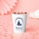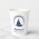 Nautische blaue und weiße Brautparty / Junggeselinnen-Abschied Papier Becher mit Segelboot und Phrase "letzte Segel vor dem Schleier". Personalisieren Sie es mit Ihren Veranstaltungsdetails.