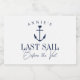 Zeit für ihr letztes Segel vor dem Schleier! Beginnen Sie das Party mit diesen niedlichen personalisierten Sekten oder Champagner-Etiketten auf Ihrem Junggeselinnen-Abschied. Das Design zeigt die Ankerillustrierung eines marineblauen Schiffes, die von einem kleinen Herz überragt wird. Darunter befinden sich zwei Zeilen benutzerdefinierter Text, die mit "Letztes Segel vor dem Schleier" angezeigt werden. Fügen Sie den Namen der Braut gebogen über die Spitze hinzu. Die Farben können mit dem Designwerkzeug von Zazzle an Ihre bevorzugten Farben angepasst werden.