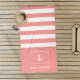 Feiern Sie Ihr Bachelorette-Wochenende, Ihren Urlaub oder Ihr Party mit diesen einzigartigen Strandtücher. Personalisiertes Design mit flamingo-rosa und weißen Streifen mit "letzter Segel vor dem Schleier", die eine weiße Ankerillustrierung flankieren. Personalisieren Sie Ihre persönlichen Daten mit dem Namen, dem Jahr und dem Ziel der Braut.