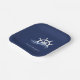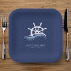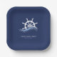 Nautikblau und weiß Brautparty / Junggeselinnen-Abschied Papier Teller mit Schiff-Helm und Phrase "letzte Segel vor dem Schleier". Personalisieren Sie es mit Ihren Veranstaltungsdetails.