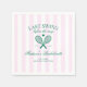 Machen Sie sich bereit, die Braut zu feiern mit einem unvergesslichen Wochenende! Das Bachelorette-Wochenende-Design "Last Swing Before The Ring", das jeden Moment Ihrer Feier so einzigartig macht wie die Braut selbst. Diese hübsche Kollektion zeigt eine inspirierte grüne Darstellung der Tennisschläger auf einem weichen, rosa gestreiften Hintergrund.