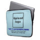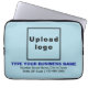 Anpassbare Notebookhülle, mit der Sie Markenbewusstsein schaffen. Die Inhalte sind Ihr Firmenlogo, Geschäfts- oder Firmenname, Adresse und Telefonnummer. Design ist dunkelblau und schwarze Texte auf hellblauem Hintergrund. Bitte Karo des Erscheinungsbildes nach dem Hochladen von Logos und Schriftzeichen. Wenn Ihnen das Aussehen gefällt, können Sie jetzt Ihre Bestellung aufgeben. Wenn Sie das Logo und die Texte ändern und verschieben müssen, um auf diese Laptop-Hülle oder auf andere Größen, die Sie wählen, passen Sie bitte das Design-Tool an. Sie können auch andere Änderungen vornehmen, die Ihren Wünschen entsprechen, z.B. die Änderung der Hintergrundfarbe, der Schriftart und des Schriftartes. Schützen Sie Ihren Laptop und tragen Sie ihn bequem bei, während Sie Ihr Unternehmen werben oder Ihren Markennamen für Ihre Kunden oder Kunden bekannt machen.