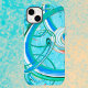 Ein lebendiges, Wirbles Abstraktes Fraktal-Muster in Blau, das in satten Blues- und Grüntönen gehalten ist. Es ist ein einzigartiges modernes Aussehen für Ihr Telefon.