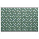 Der Stoff oder das Material weist ein rundes Muster von Fotos aus Leuchtern oder Leuchtern in weißem und kalk-grünem Set auf, das vor einem dunkelgrünen Hintergrund steht.