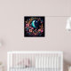 "Lumineszenter Blumenzauber" ist ein lebendiges und bezauberndes Poster. Ein schön detaillierter, leuchtender blauer Halbmond und ein Sternenhimmel sind durch eine verzierte goldene Grenze gerahmt. Das Design ist mit rosa, blau und lila Blumen geschmückt und verleiht einem mystischen und skurrilen Ambiente eine einzigartige Touch.