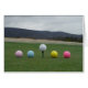 Gelbe, rosa und blau, weiße, leuchtend farbige Golfbälle auf einem Foto von Sandy Closs am Arrowhad-See. Golf, Golfer, Golfen, "Golf Grobse", Frühjahr, "Sport", Ostern, Urlaub, "Osterei" pink, Golfer blau gelb