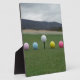 leuchtend farbige Golfbälle auf einem Berg Fotoplatte