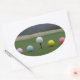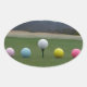leuchtend farbige Golfbälle auf einem Berg Ovaler Aufkleber