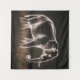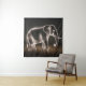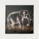Leuchtende Elefant-Silhouette, ein Foto einer Silhouette eines leuchtenden Elefanten. Der Körper des Elefanten wird beleuchtet, wobei das Licht die majestätische Höhe seines Kofferraums und den Bogen seines Rückens hervorhebt. Der Elefant ist in einem Feld von großen Gräsern stehend, die ebenfalls beleuchtet werden. Der Hintergrund ist schwarz. Die Beleuchtung schafft ein Gefühl von Pracht.