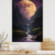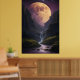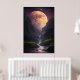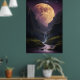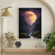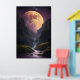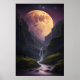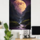Dieses bezaubernde Poster fängt einen atemberaubenden Moment unter dem Nachthimmel ein, wo ein prächtiger goldener Mond die Bühne im Zentrum nimmt und sein leuchtendes Licht über eine ruhige Bergwelt wirft. Der Mond, unvorstellbar groß und strahlend ein weiches, goldenes Licht, scheint Geheimnisse des Universums in seinem Glanz zu halten und die Szene mit einer mystischen Aura zu beleuchten. Unten schlängelt sich ein sanfter Bach durch das zerklüftete Berggelände, der das ätherische Licht des Mondes reflektiert und die magische Atmosphäre der Szene verstärkt. Der Himmel, in lila Tiefen gemalt, fügt eine Schicht von Mystik und Staunen hinzu und schafft ein harmonisches Gleichgewicht zwischen Himmelskörper und Erde. Dieses Plakat ist nicht nur ein Kunstwerk, es ist eine Tür zu einem friedlichen, anderen Ort, wo die Schönheit der Natur perfekt mit dem Kosmos harmoniert.