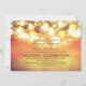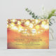 Elegante rustikale Vintage Hochzeitseinladung mit Saitenleuchten, Laternen und lackiertem orangefarbenen - gelben Grunge Hintergrund. Ideal für Ihre rustikale Landhochzeit oder Hochzeit im Freien mit bunten und glanzvollen Lichtern.