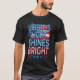Dieses T - Shirt-Design ist ein gewagtes und lebendiges Fest der amerikanischen Freiheit. Der Text "Leuchtende Helle der Freiheit" wird in einem mehrfarbigen Berst angezeigt, wobei jedes Wort eine andere auffällige Farbe hat. Eine klassische amerikanische Fahne mit knackigen Streifen und ein detailliertes blaues Feld mit weißen Sternen liegt stolz unter dem Text und vervollständigt das patriotische Aussehen.