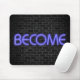 leuchtendes Neon BECOME-Schild auf Backstein Mousepad