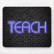 leuchtendes Neon-TEACH-Schild auf Backstein Mousepad