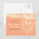 Elegante und moderne Pfirsichfarben Save the Date Postkarten mit Liebe Herzbaum und Lichtenfolge. Perfekt modern und dennoch Vintag Save the Date für den Garten, den Garten oder die rustikale Hochzeit im Freien.