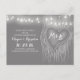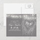 Elegante und moderne, hellgraue, Save the Date Postkarten mit Liebe-Herzbaum und Lichterkette. Perfekt modern und dennoch Vintag Save the Date für den Garten, den Garten oder die rustikale Hochzeit im Freien.