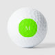 Golfbälle mit fluoreszierendem grünem, massivem Hintergrund und weißem Schriftart .Einfaches und trendiges Design von Alma Wad .Personalisieren Sie es jetzt mit Ihrem Monogramm ..