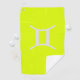 Golf Handtuch mit fluoreszierendem gelben massiven Hintergrund und hellgrauem Zodiaksymbol der Gemini .Einfaches und trendiges Design von Alma Wad .