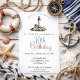 Feiern Sie einen Meilenstein-Moment mit dieser eleganten, maritimen Leuchtturm-Geburtstagseinladung, perfekt für eine unvergessliche 30. Geburtstagsfeier. Mit einem wunderschön illustrierten Leuchtturm auf einer felsigen Küstenlinie fängt dieses Design einen zeitlosen, maritimen Charme mit sanften, nautischen Tönen und raffinierter Typografie ein. Das klassische, aber moderne Layout macht es ideal für Erwachsene, die maritime, nautische oder Neuengland-inspirierte Themen lieben.