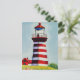 Nur eine Postkarte, um in Touch mit jemandem behalten. Eine Abbildung eines rot-weiß gestreiften Leuchtturms auf dem Ozean.