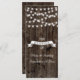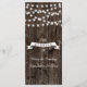 Lichterfolge und Vintages Banner auf alten Holz Sommer Hochzeitsfeier und Party-Programm mit einem weißen Banner mit brauner Kontur auf alten braunen Holzboden. Dieses moderne und trendige Hochzeitsdesign aus Holz mit Vintagen Elementen ist Teil eines Hochzeitsgeschehens oder einer Hochzeitskollektion. Es ist vollständig anpassbar und eignet sich ideal für einen Western in der Sommernacht im Freien. Beachten Sie, dass es nicht nur gedruckte Bilder aus echtem Holz gibt.