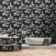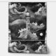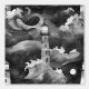 Aquarellfarbene große Ozeanwellen treffen auf das Meer Küste des Leuchtturms mit Vollmond in Graustufen.
