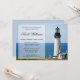 Ein atemberaubendes Foto eines Leuchtturms am Strand wird auf dieser Wasserthemeneinladung zur Brause gezeigt. Personalisieren Sie Ihre Veranstaltung ganz einfach!