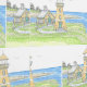 Handgezeichnetes gelbes Leuchtturm-Tapete