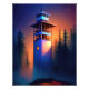 Dieses atemberaubende nächtliche Bild zeigt die Schönheit und den Zauber eines von Bäumen umgebenen Turms. Die gedämpften Farben und sanften Pinselstriche schaffen ein Gefühl der Ruhe und Entspannung, während die geheimnisvolle Atmosphäre den Betrachter einlädt, die versteckten Geheimnisse des Waldes zu erkunden.