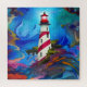 Schönes rot-weiß gestreiftes Leuchtturm auf einem Felsen, umgeben von farbenfrohen Winden und Wasser KI Kunst von minx267