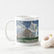 Die Tasse des Kaffees ist mit einem Gemälde aus dem Leuchtturm von Cedar Point in Scituate, Massachusetts bedruckt. Artwork: Aquarell auf Tafel. Copyright Dominic A. White. Alle Rechte vorbehalten.