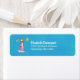Adressetiketten mit einem nautischen Thema. Entworfen auf einem blauen Hintergrund mit einem rot gestreiften Leuchtturm und einem Beachball. Eine lächelnde Sonne und fliegender Seegras in der Ferne.
