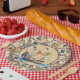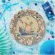 Schöne beige und blaue Themenplatte mit Ankern, Möwen, Leuchttürmen und Booten