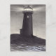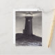 Schwarzweiss-Illustration eines Leuchtturmes, der seinen Navigationsleuchtestrahl in einer dunklen Nacht zur Sicherheit eines Bootes überschreitet in stürmische Meere nahe der felsigen Ozeanuferküstenlinie glänzt. Konzept durch Lee Serenethos, zeichnend durch Jim Monahan. 1_lighthouse_night_ship_OPG200x10