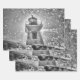 Lighthouse Ozean nautische schwarz-weiß rustikale Küste Vintage Decopage Handwerk Packpapier Blatt Set von drei. Foto Art von Killarney, Ontario Kanada. Felsen im Vordergrund, alter Leuchtturm gegen Textur Himmel. Retro-Stil bedruckt schöne Design Geschenkverpackung. Bildrecht Marg Seregelyi Fotografie.