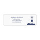 Eleganter und einfacher Retourenaufkleber mit einer Illustration eines Leuchtturms in marineblau für eine Meeres- und nautische Hochzeit! Es kann auch für eine Familie, ein Unternehmen oder Ihr kleines Unternehmen verwendet werden!