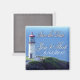 Kilauea Point Leuchtturm in Kauai Hawaii, auf einer grünen Klippe gegen den blauen Ozean mit Save the Date in Skript-Schriftart. Ändern Sie einfach Namen und Daten auf diesem Leuchtturm speichern Sie den Datums-Magneten.