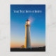 Schicken Sie eine Notiz mit dieser schönen nautischen Postkarte. Dieses Design verfügt über einen prächtigen weißen Leuchtturm in der Dämmerung Stunden mit Sternen sichtbar in der dunkelblauen Himmel über. Der Leuchtturm am Strand strahlt im Osten ein warmes Licht aus, um die Schiffe sicher Zuhause zu führen. Die Rückseite der Karte ist standardmäßig hellblau. Oben befindet sich eine Stelle, an der Sie die Karte mit Ihrer eigenen Meldung in weißem Druck personalisieren können. Drücken Sie einfach die Schaltfläche Anpassen, um den Text zu bearbeiten oder zu löschen, oder drücken Sie die Schaltfläche Anpassen, um den Schriftart, die Textfarbe oder die umgekehrte Seitenfarbe zu ändern. Macht ein großartiges Geschenk oder Dekoration! Ideal für Leuchtturm, Schiffe, Strand- und Meeresliebhaber und Fans von nautischer oder ozeanischer Kunst.