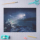 Zierpapier mit dem Bild einer Meerjungfrau und eines Leuchtturms in der Nacht.