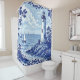 Ein Leuchtturm bewacht auf einem Felsvorsprung, während die Boote in der Ferne segeln und so ein schönes, maritimes Jouy-Design in Blau und Weiß schaffen. Ideal für das Strandhaus oder für alle, die das Meer und Segeln Lieben.