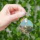Schlüsselkette mit einem Foto, das auf einen Leuchtturm am Ufer schaut.