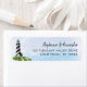 Fügen Sie passende Adressetiketten zu Ihrer Hochzeitssuite für den nautischen Leuchtturm hinzu, mit diesen Aufklebern für die Rücksendeadresse, die einen schwarz-weißen Spiralleuchter in Aquarellfarbe mit hellblauem Ozean- und Himmelshintergrund sowie einen modernen Schriftart für die Namen mit Pinselskripten aufweisen. Für passende Produkte, sehen Sie bitte die Kollektion, oder kontaktieren Sie mich über Zazzle Chat für weitere Produkte oder Designs.