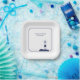 Elegante und schlichte Teller mit einer Illustration eines Leuchtturms in marineblau für eine Hochzeit zum Thema Meer und Wassersport!