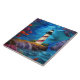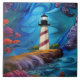 Schönes rot-weiß gestreiftes Leuchtturm auf einem Felsvorsprung umgeben von Blume und blauem Wasser/Himmel Kunst von minx267