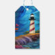 Schönes rot-weiß gestreiftes Leuchtturm auf einem Felsvorsprung umgeben von Blume und blauem Wasser/Himmel Kunst von minx267